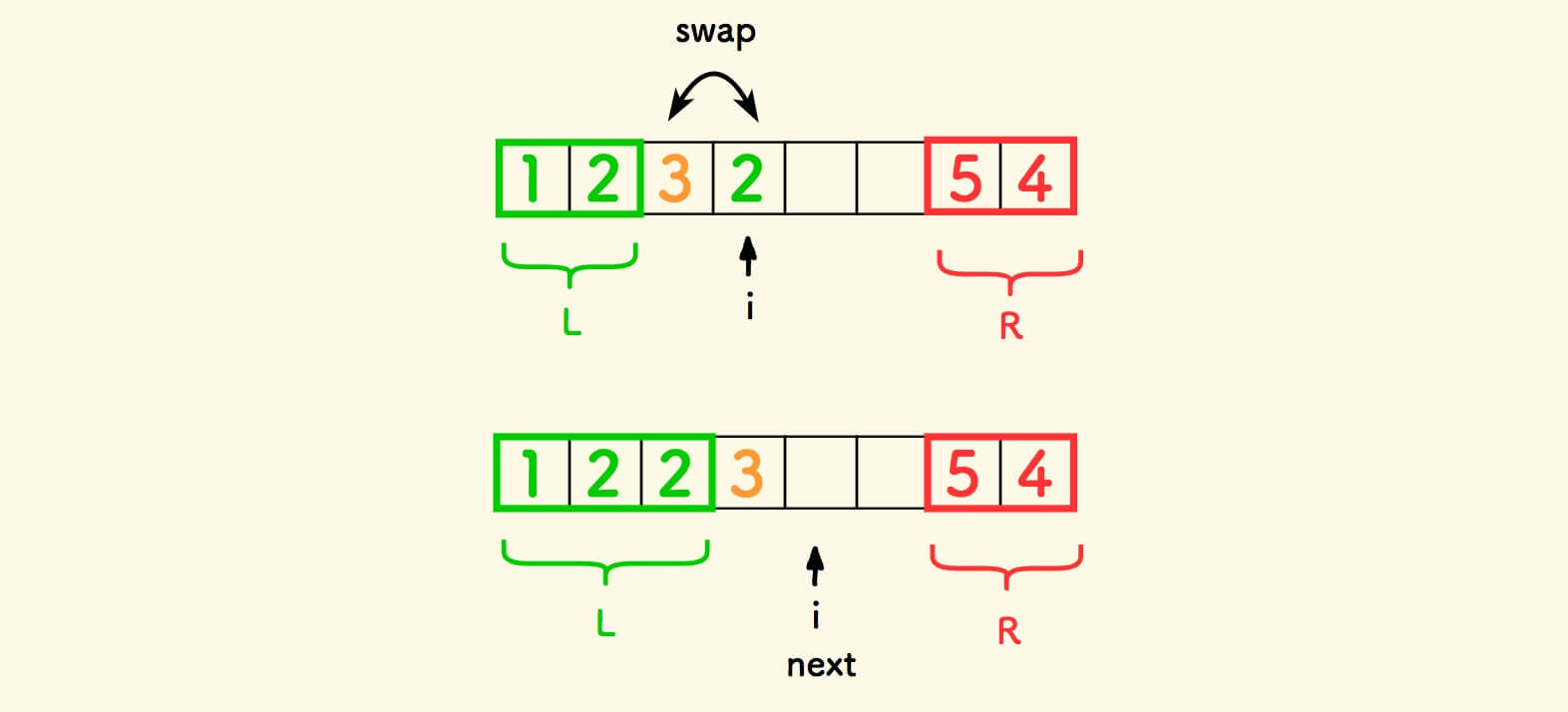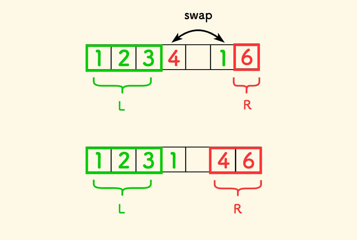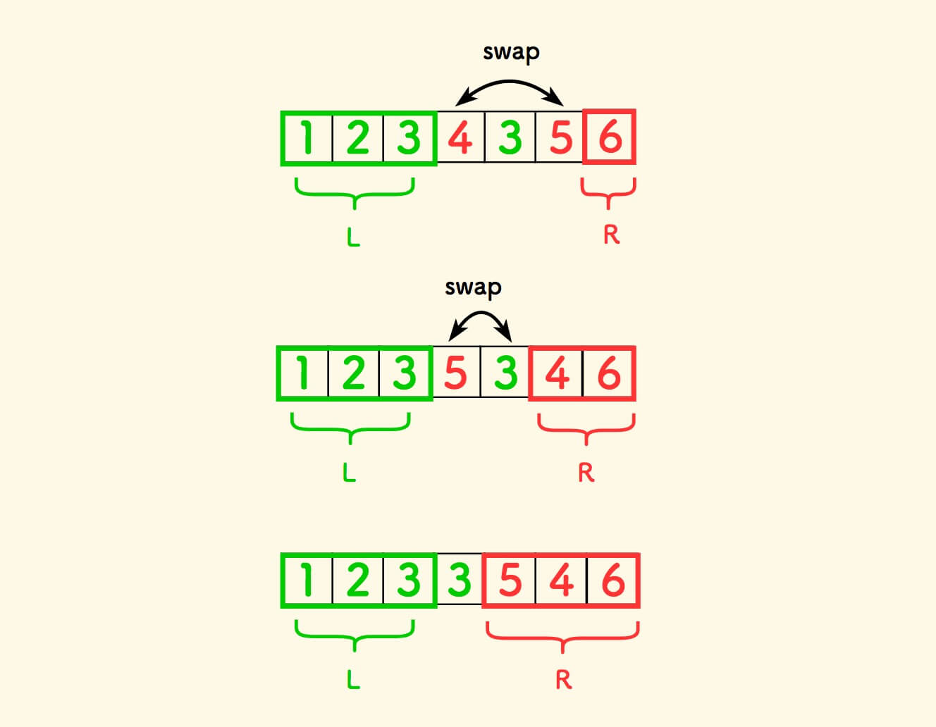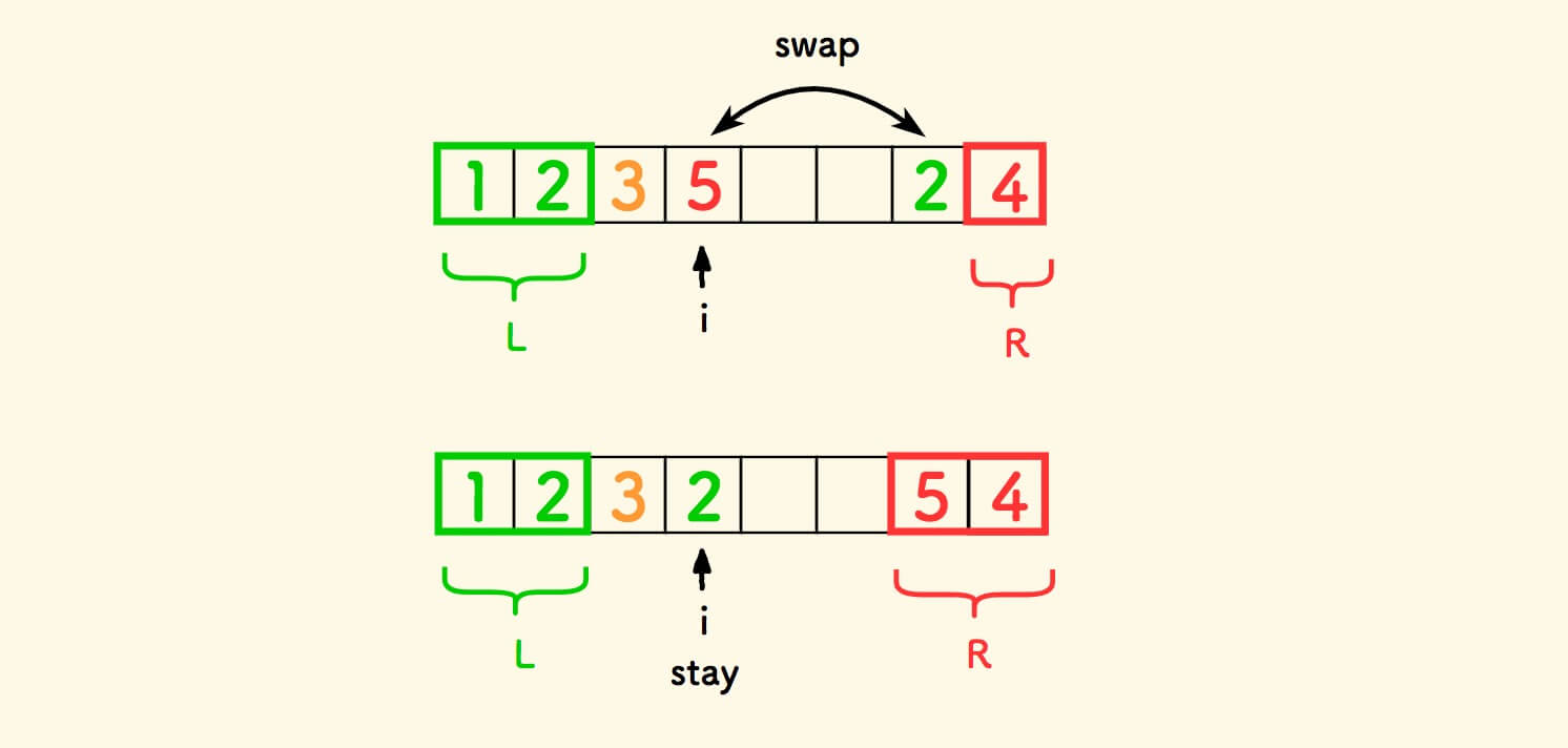 R左邻的元素,需要采用交换,把它安置在L的右边。