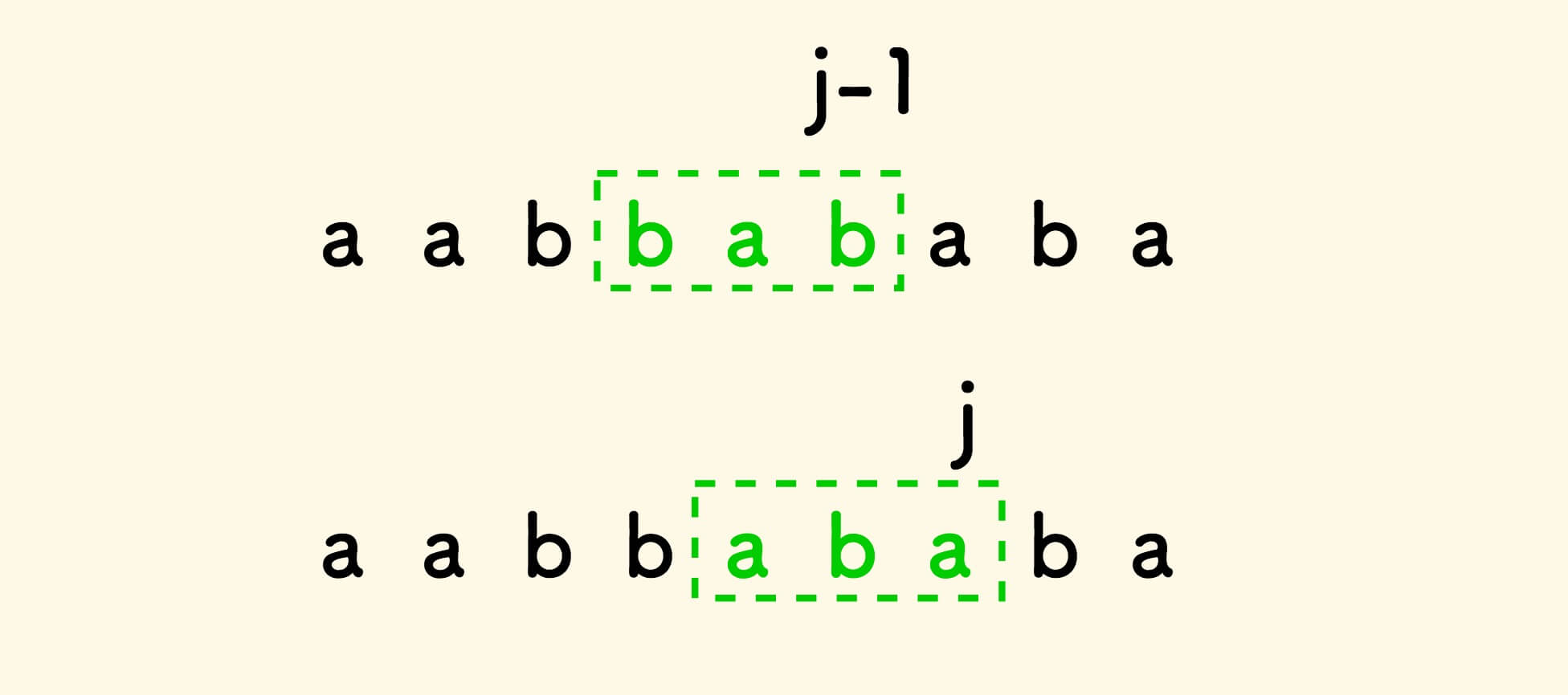 if (dp[j - 1] > 0 && s[j] == s[dp[j - 1] - 1]) {