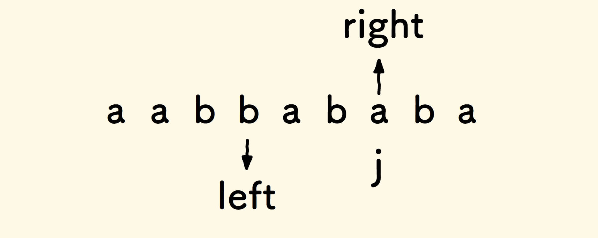 right拉回右边,因为要找的是以位置j结尾的回文串。