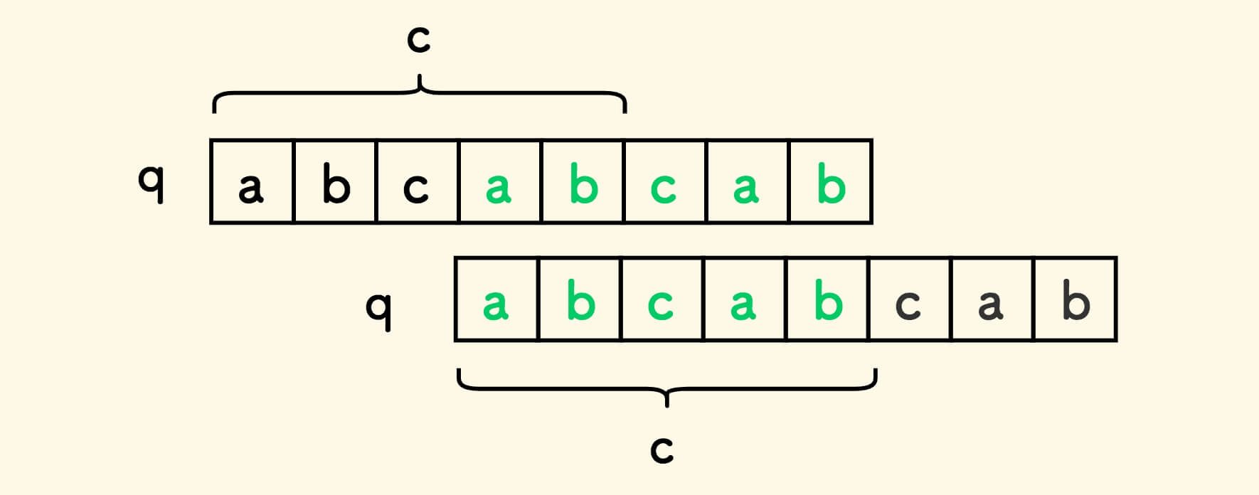 令 d = len(q)-len(c)