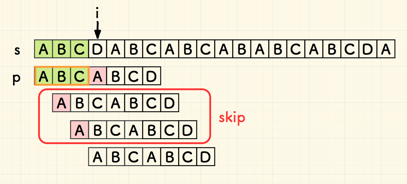 处继续比对。也就是,跳到当前已经匹配好的部分(下图中的