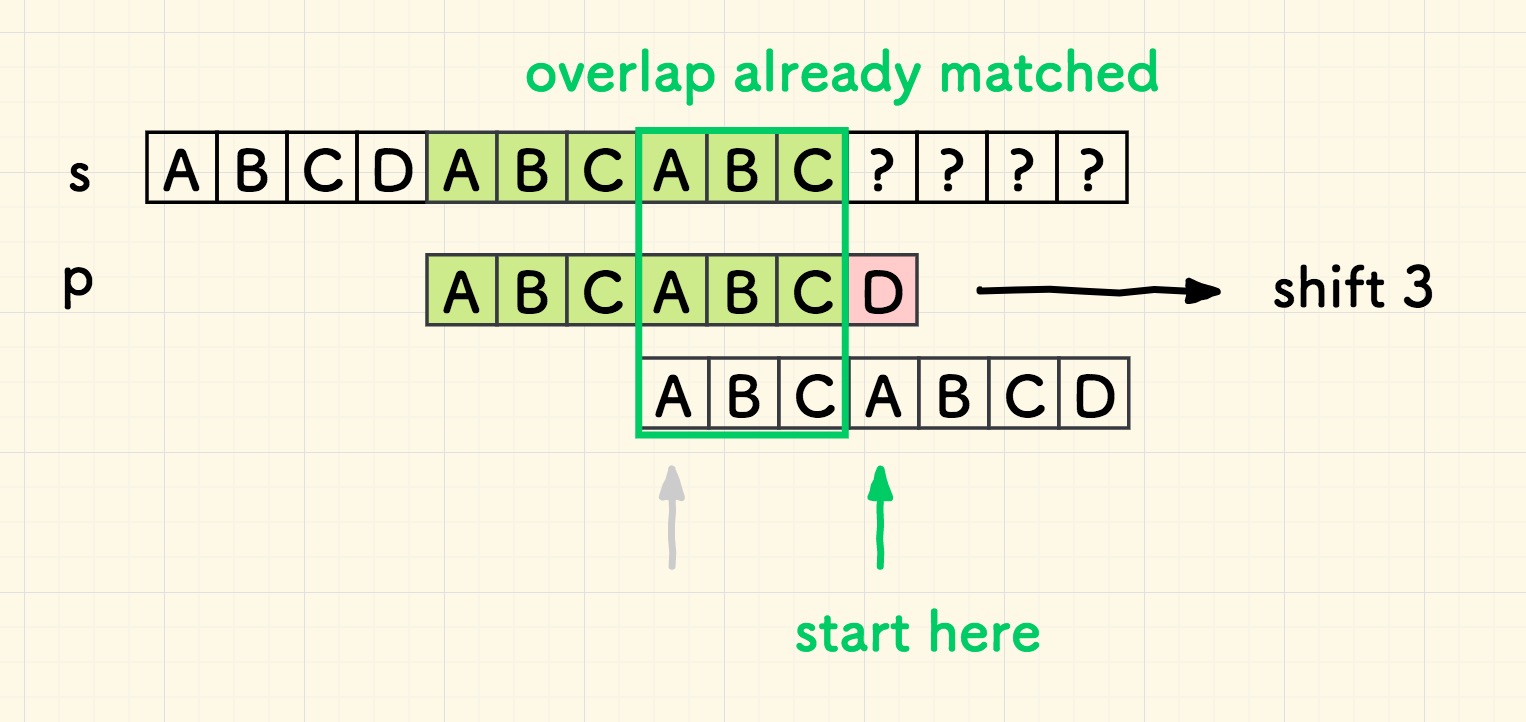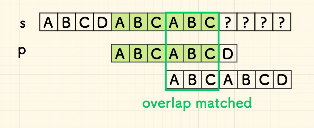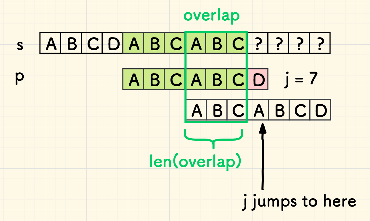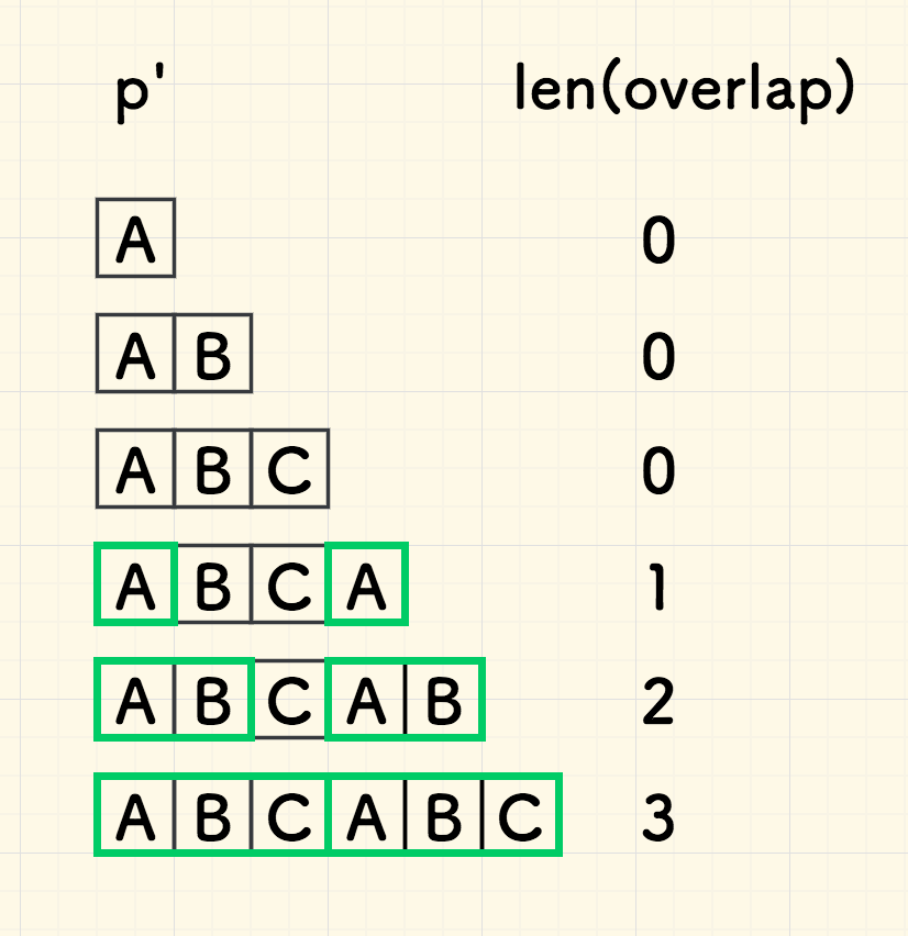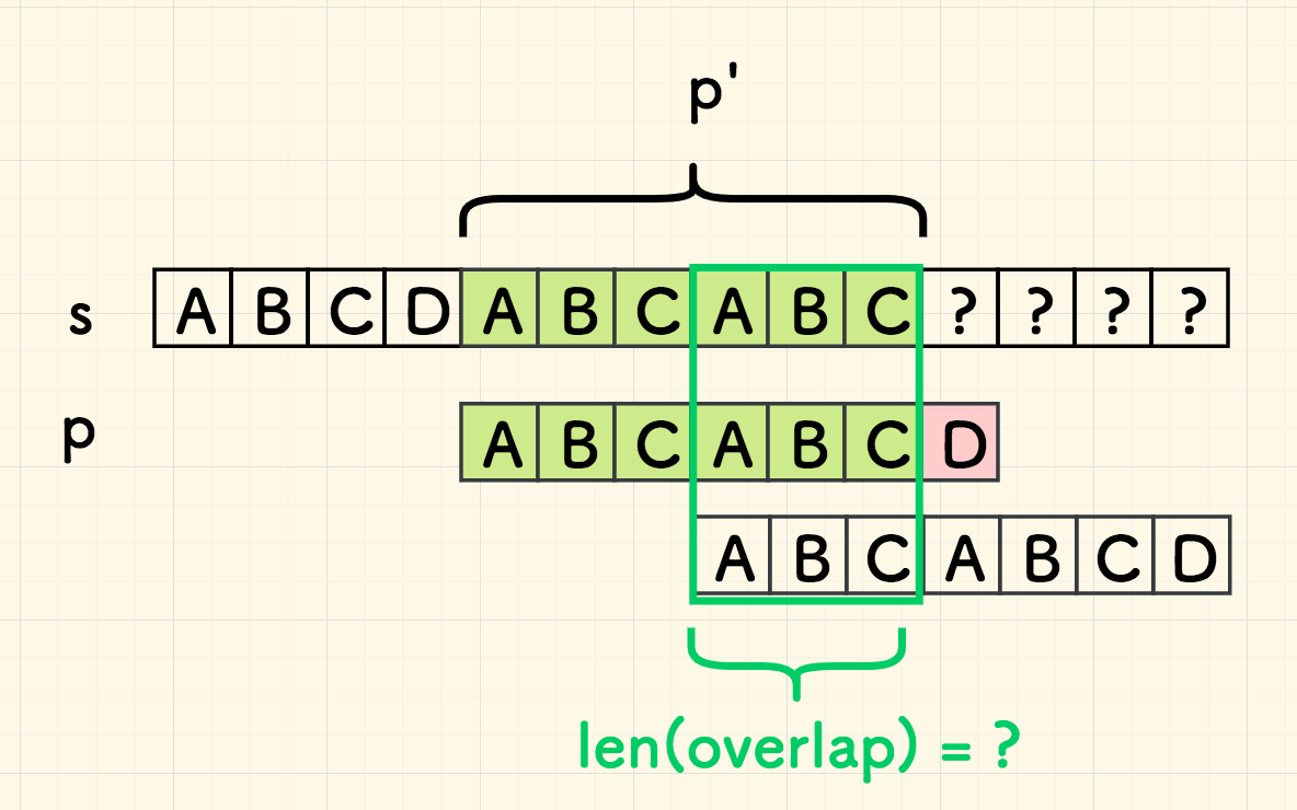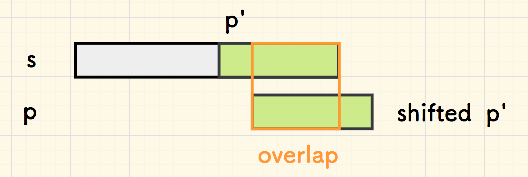 个字符, 那么只可以向右跳跃 len(p') - len(overlap)