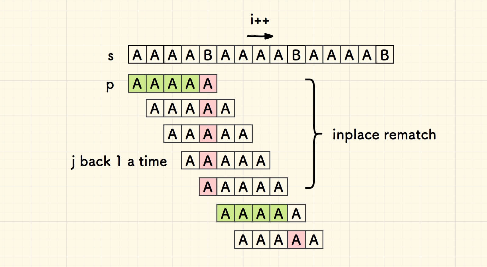 前面已讲,KMP 匹配过程,会在失配处回溯 j