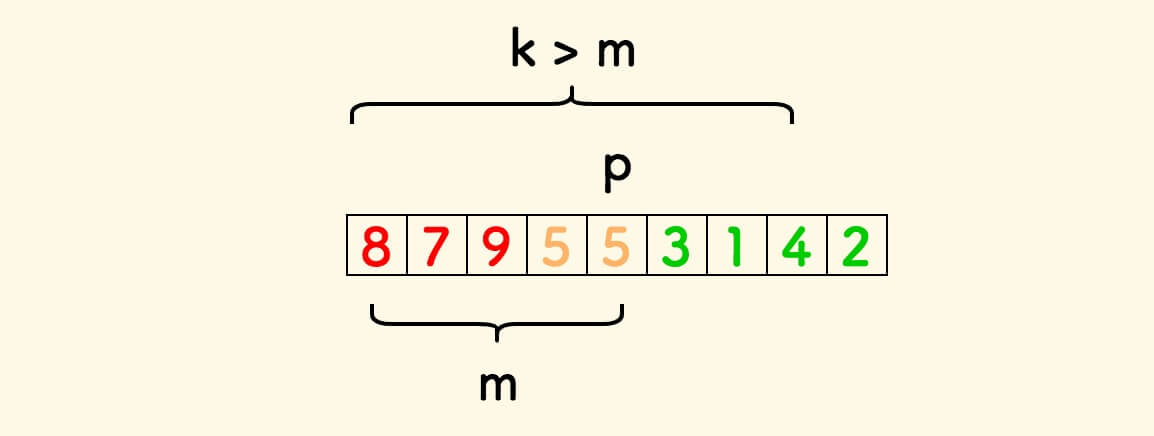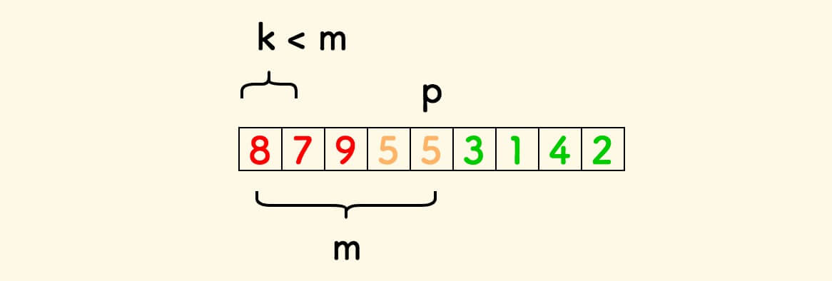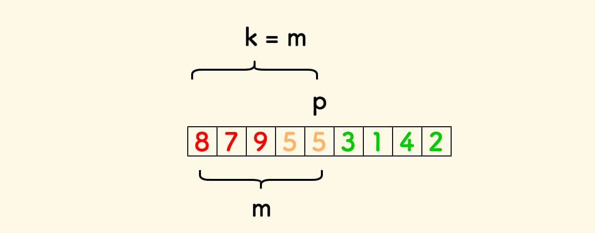 取 m = p + 1 ,那么 m 表示的就是整个数组中基准元素左边的元素个数。