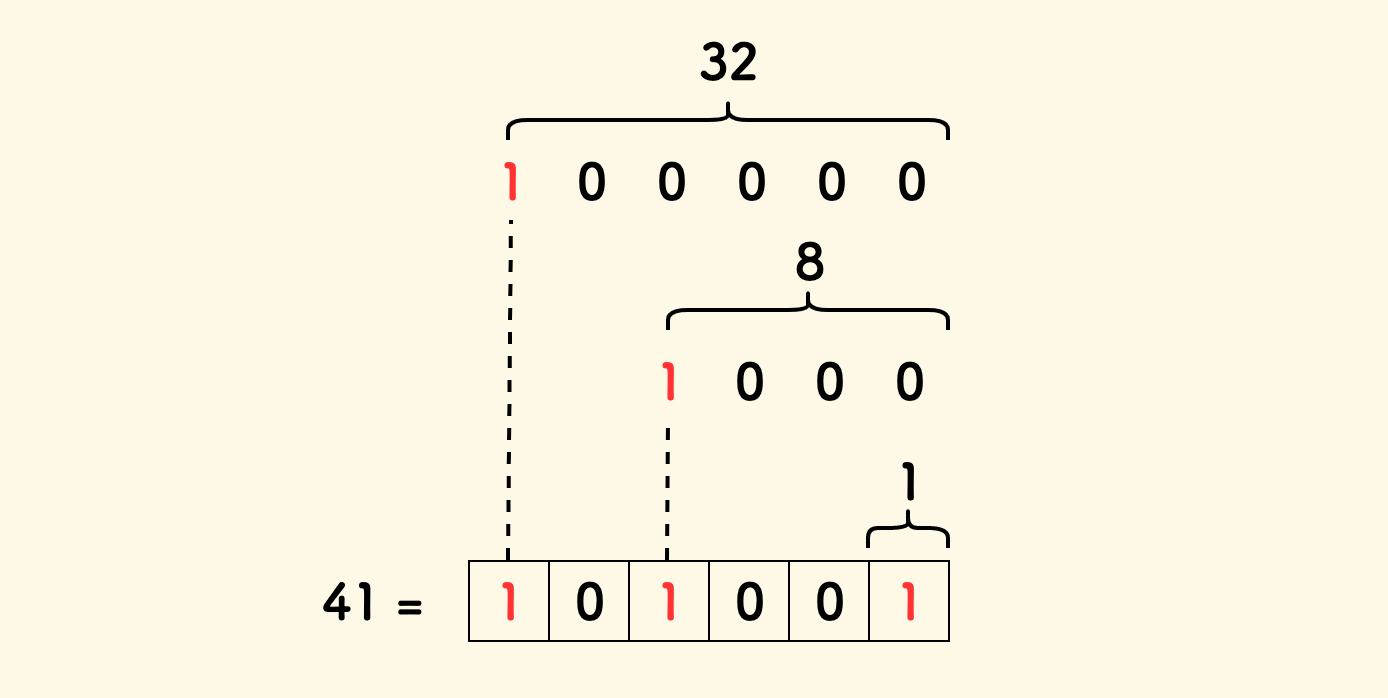 x = 41 = 0b101001