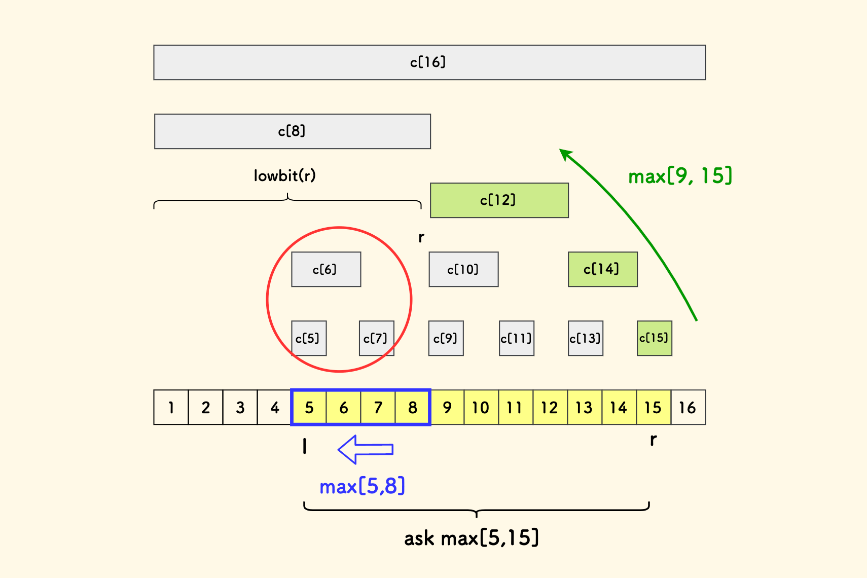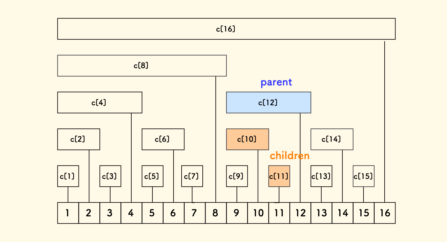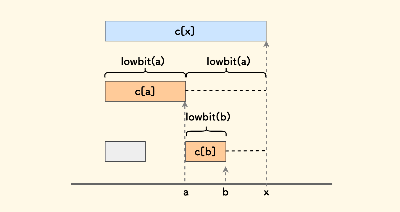 ,我们知道它们管辖的区间长度分别是 lowbit(a)