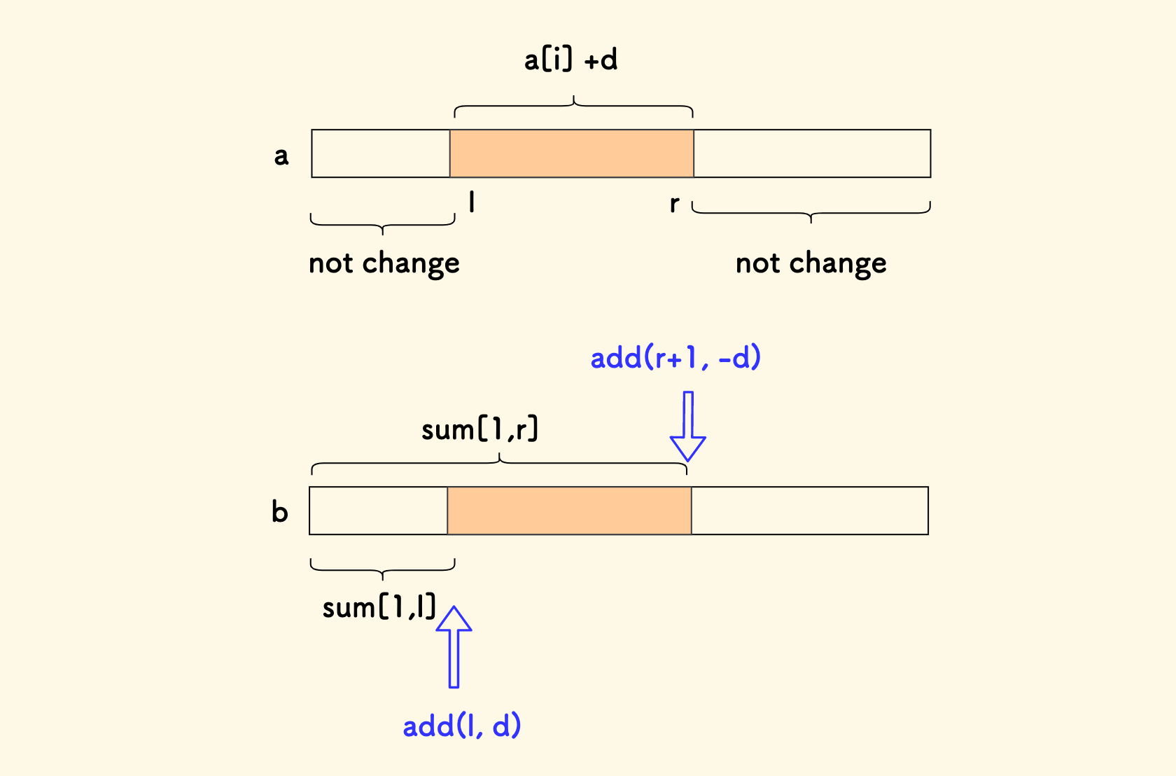 朴素的方法,一个数组的单点修改时间复杂度是 $O(1)$,区间求和是 $O(n)$。