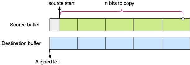- 先把要拷贝到的目标串的位置对齐。即目标串的比特索引值要是