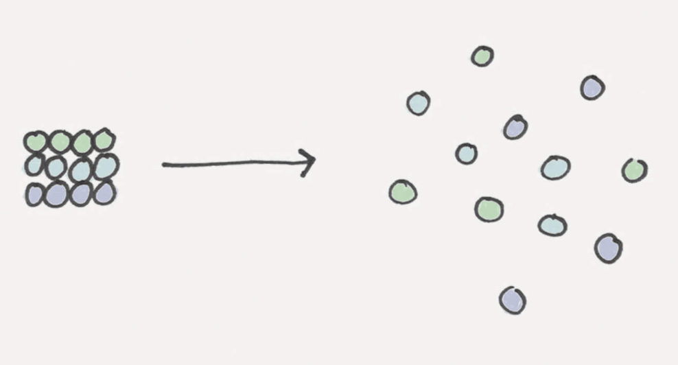 - 如果糖水不是均匀的,搅拌后,则浓度分布比之前更为均匀了。