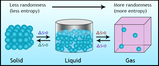 对于一杯水来说,从冰块、到融化为液体、再到气化为气体,其熵是不断变大的过程: