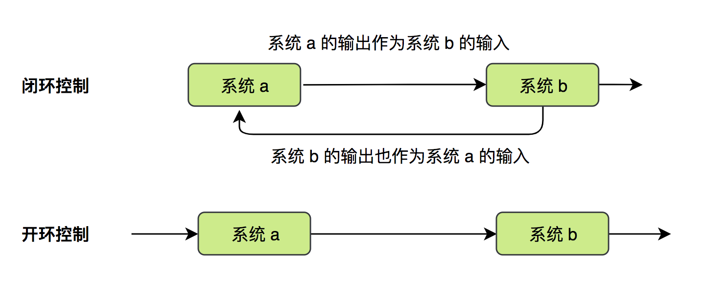 在控制理论中,有两种控制方式: 开环控制 和 闭环控制。 开环控制是指没有考虑反馈的简单控制方式,而闭环控制则是考虑反馈的、根据反馈不断计算误差进行控制调整的方式。