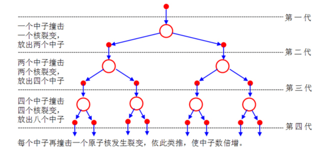一个典型的正反馈的例子,是原子弹爆炸中的核链式反应。
