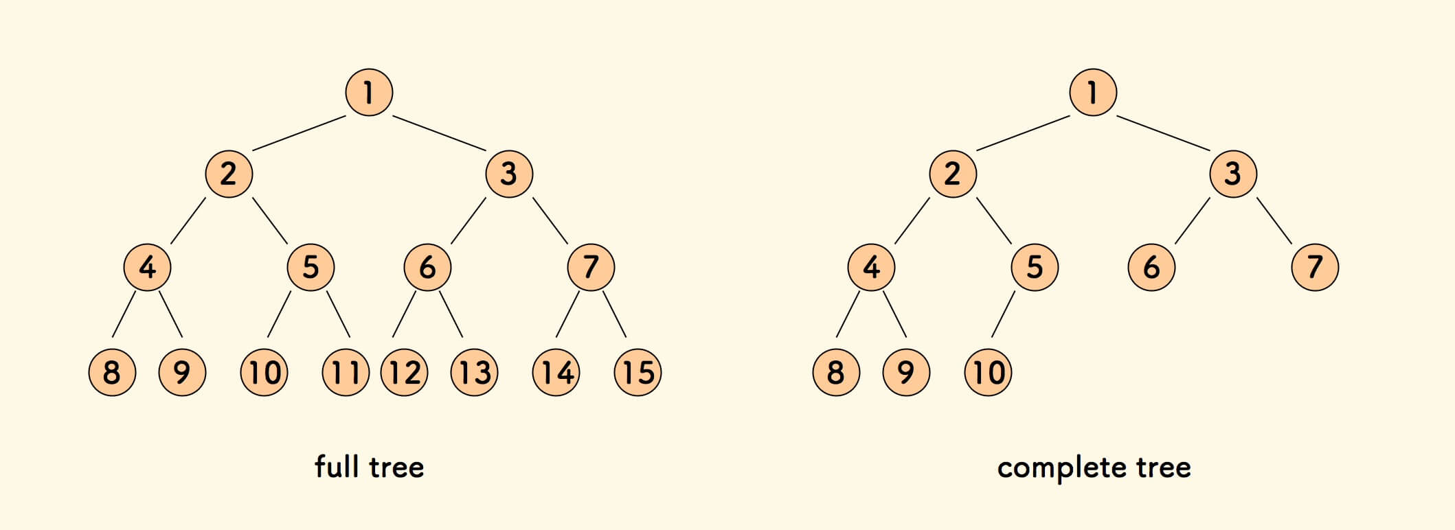 完全二叉树 是只有最后一层节点右边不放满的二叉树。