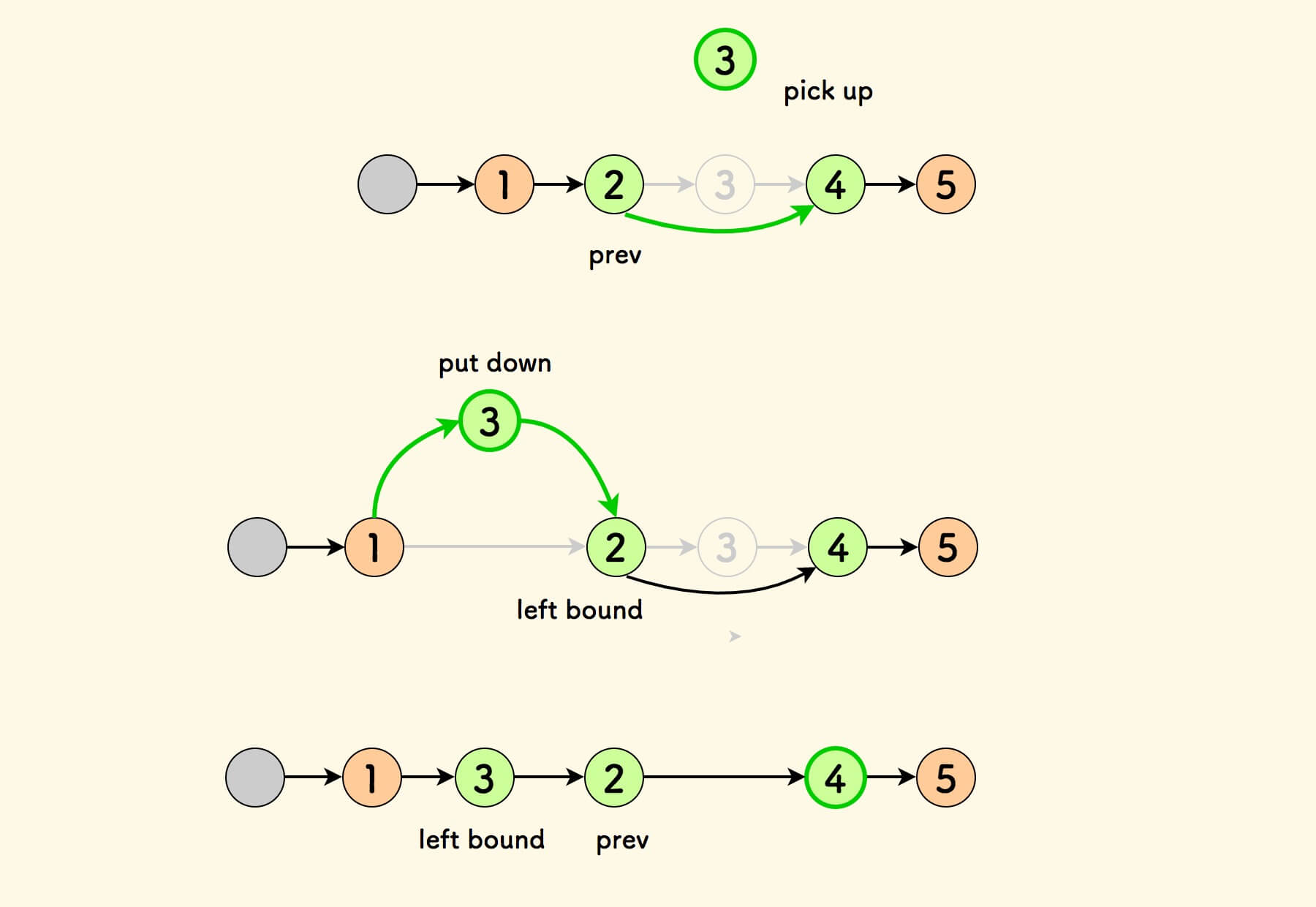// 注意,只有在没有挪走 node 的时候才需要更新 prev
