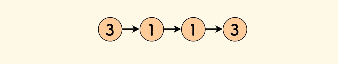 - 将链表节点全部入栈,然后出栈和原链表比较。