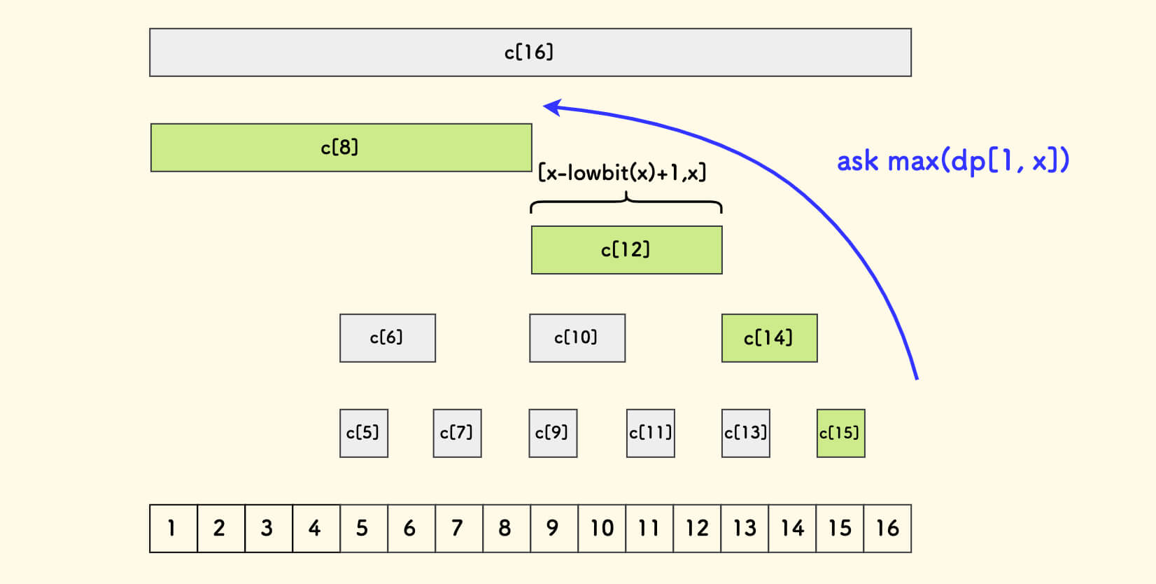如果树状数组是维护前缀最值的,那么每个 c[x]