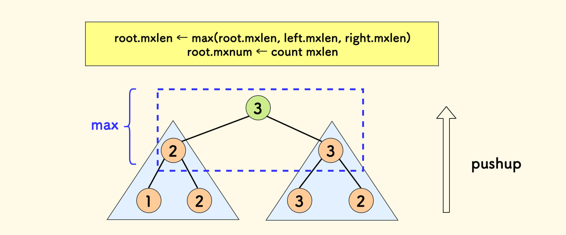 pushup 维护 mxlen 和 mxnum 字段 - C++ 代码