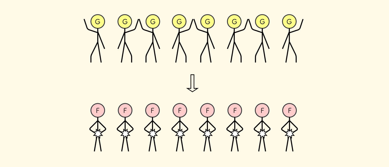 现在,套用前面所说的规则,继续对 8 个士兵的情况推演: