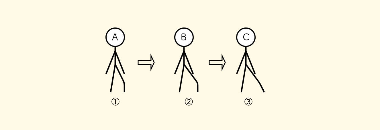 状态。 通俗点说,左边的人迈右腿快结束了,我才开始迈右腿。
