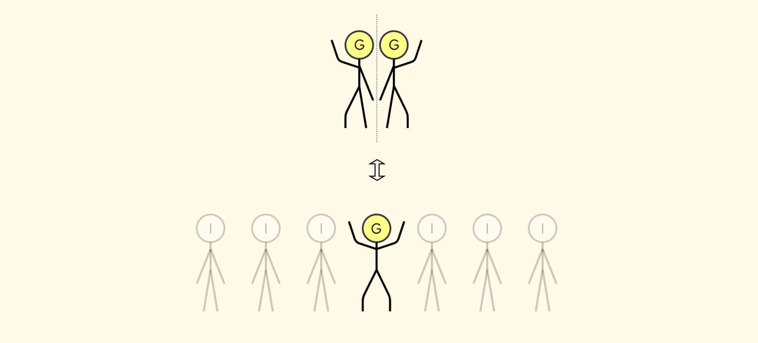 这样,两个将军将分别向左右传播举手和迈腿的动作,达到二分的目的!
