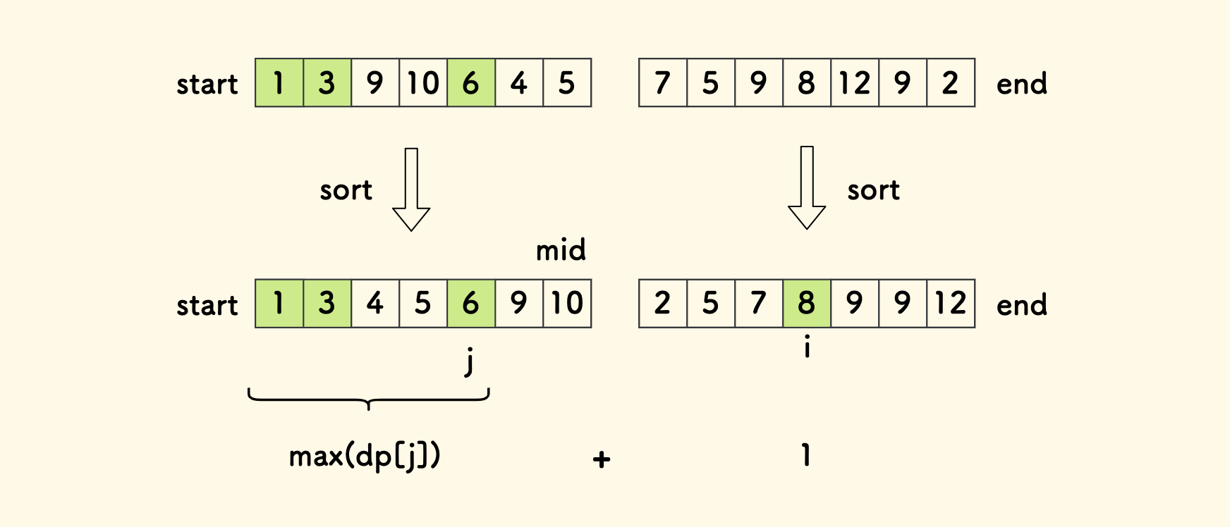 while (j <= mid && a[j] < a[i]) ma = max(ma, dp[j++]);