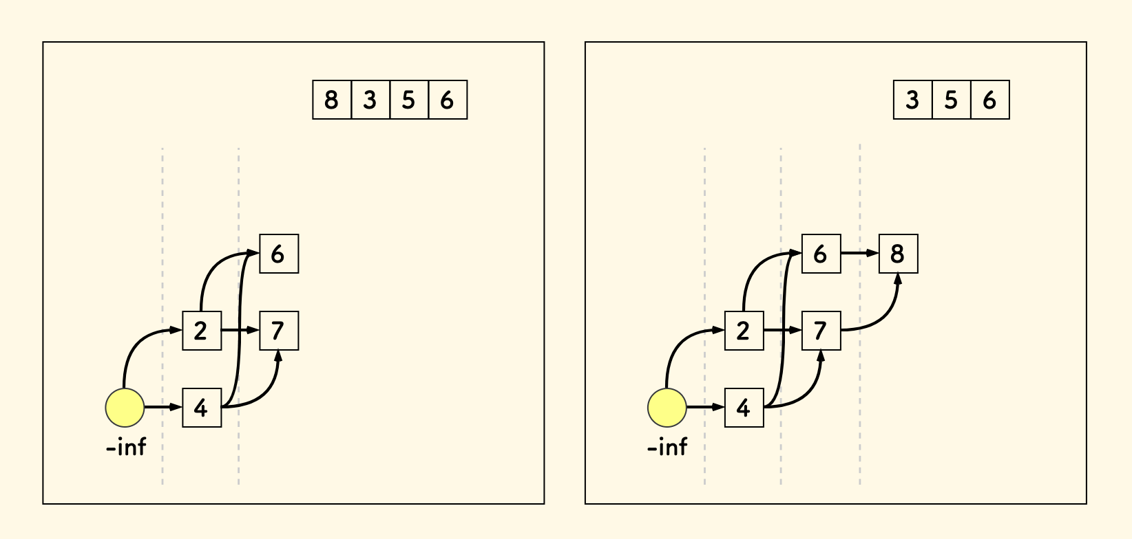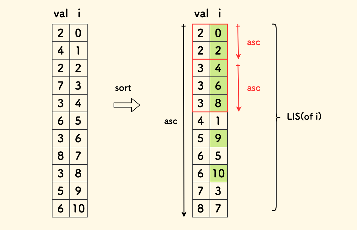 换句话说,对于每个 LIS 长度,仅需要维护结尾元素值最小的那个 $x_j$。