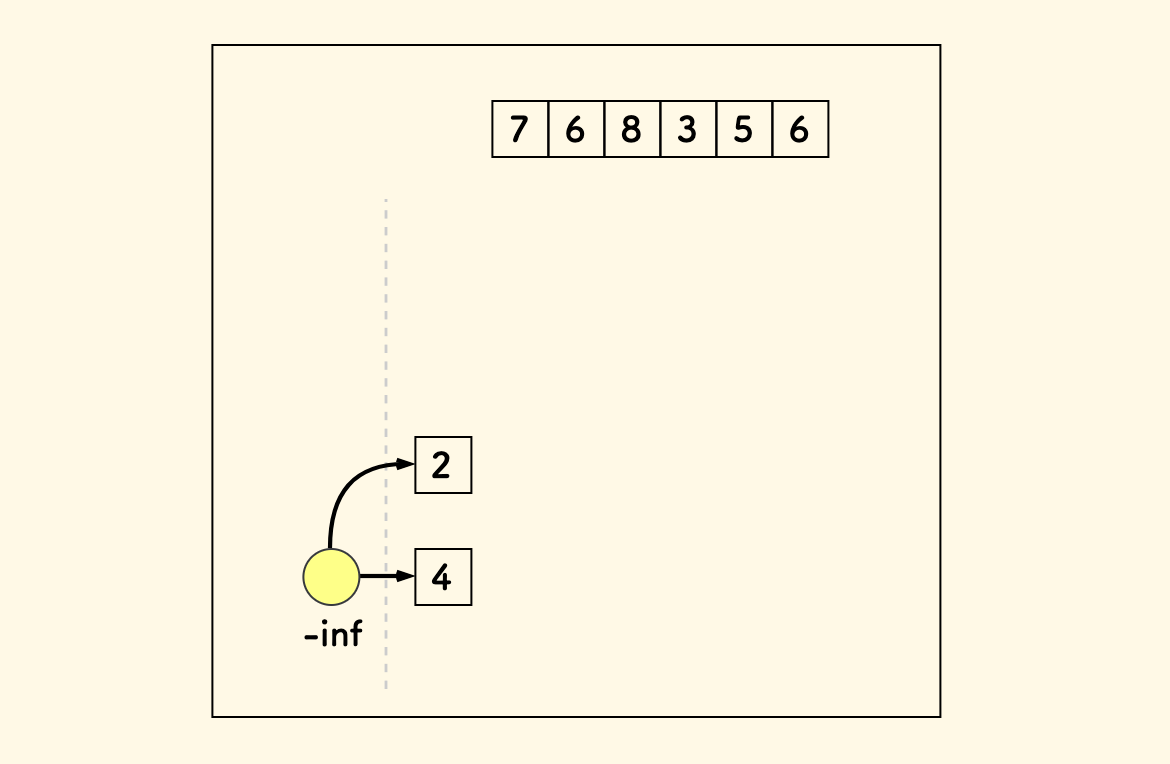 仍以数组 4,2,7,6,8,3,5,6