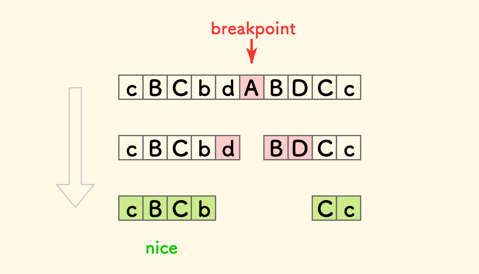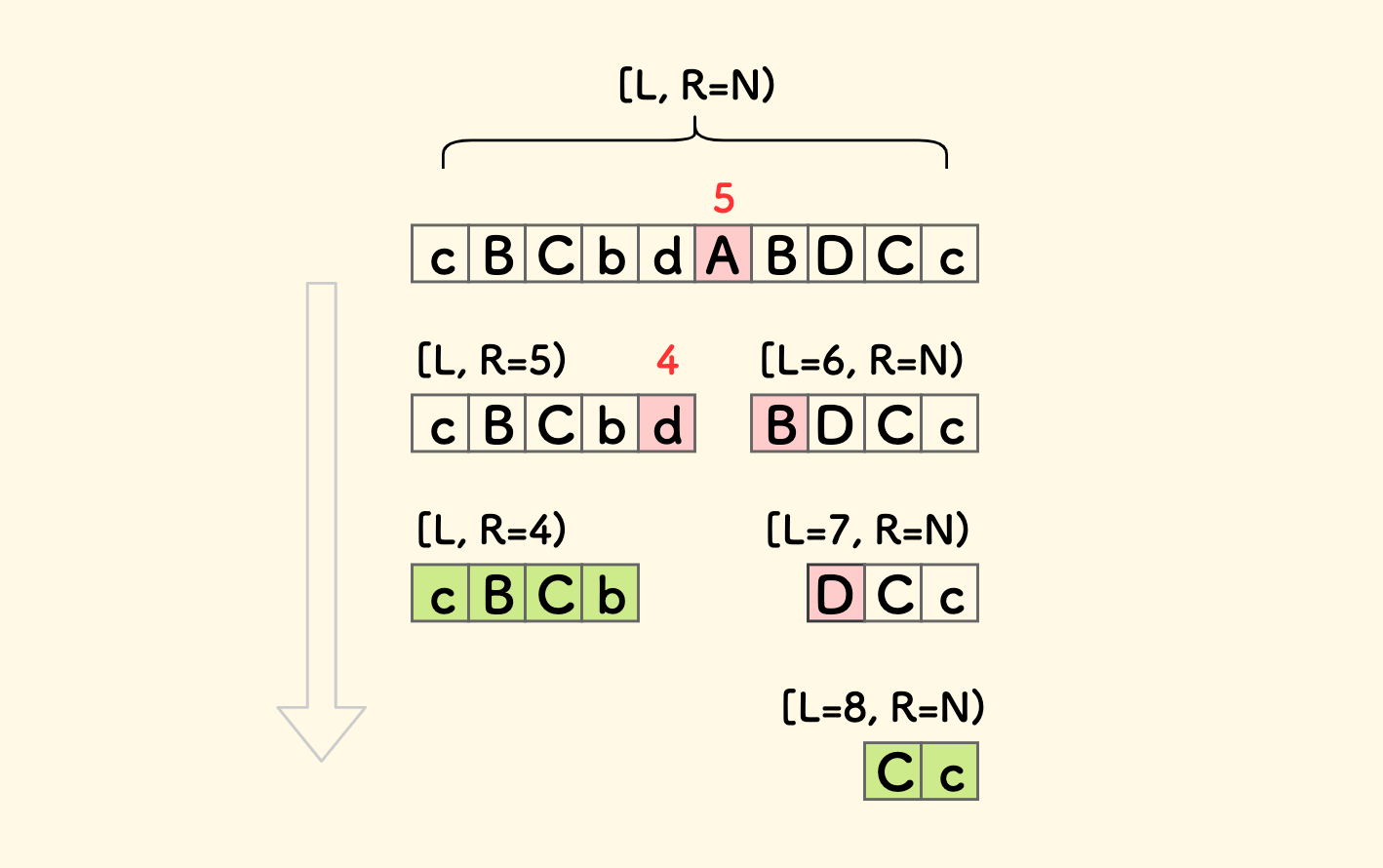 - 如果找不到断点,则返回整个当前区间,作为一个美好子串的区间结果。