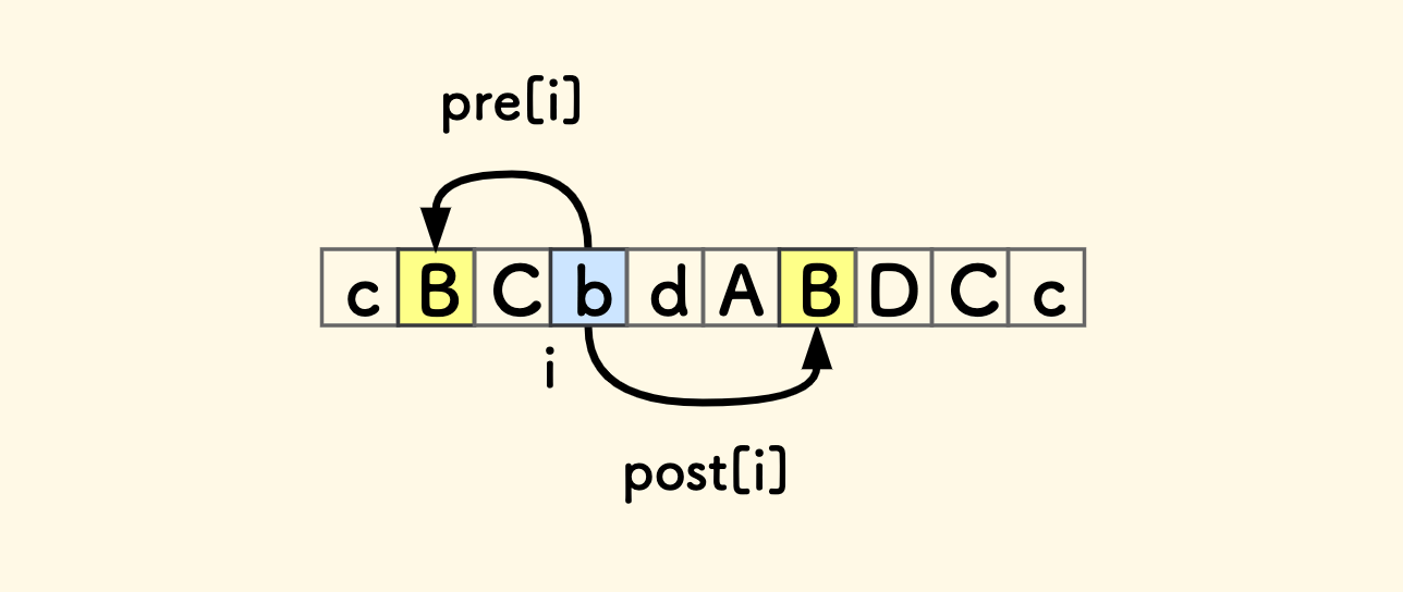 // pre 记录上一次其镜像字符出现的位置. 默认是 -1;