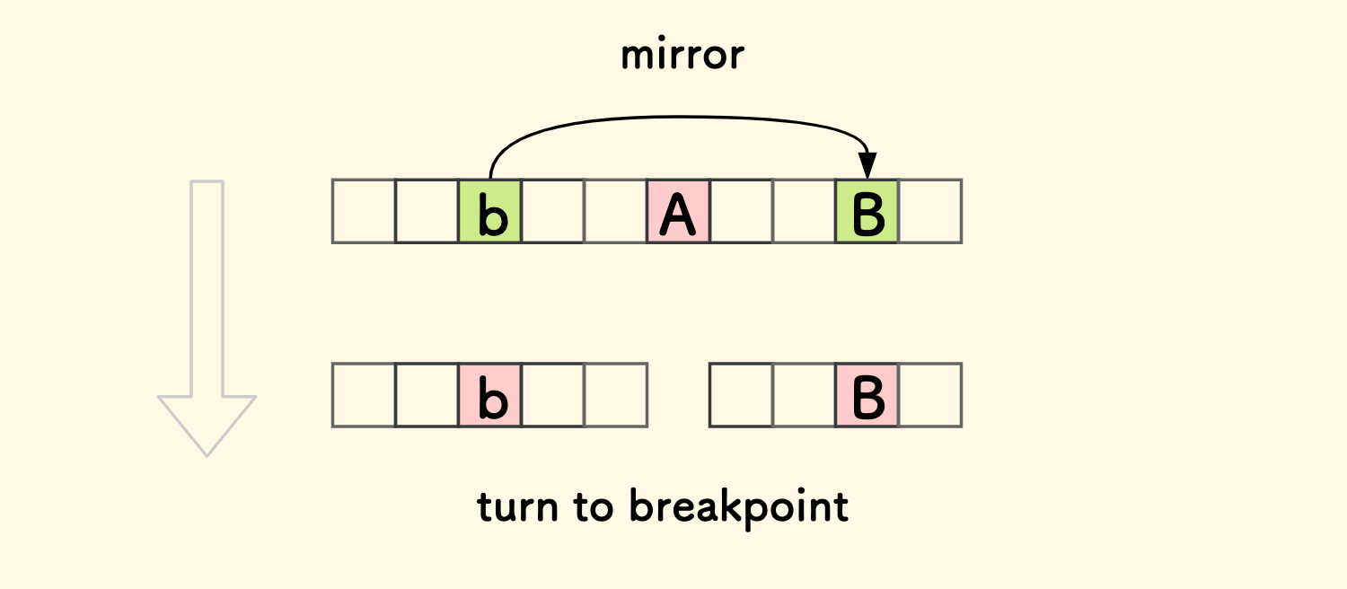 断点的含义是说,其镜像字符在当前区间内未出现。