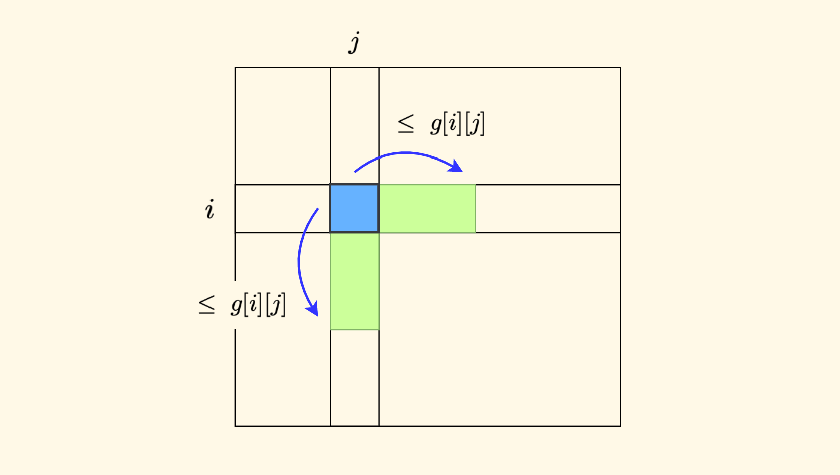 - 这个距离上界限制为当前方格的值 $g[i][j]$。