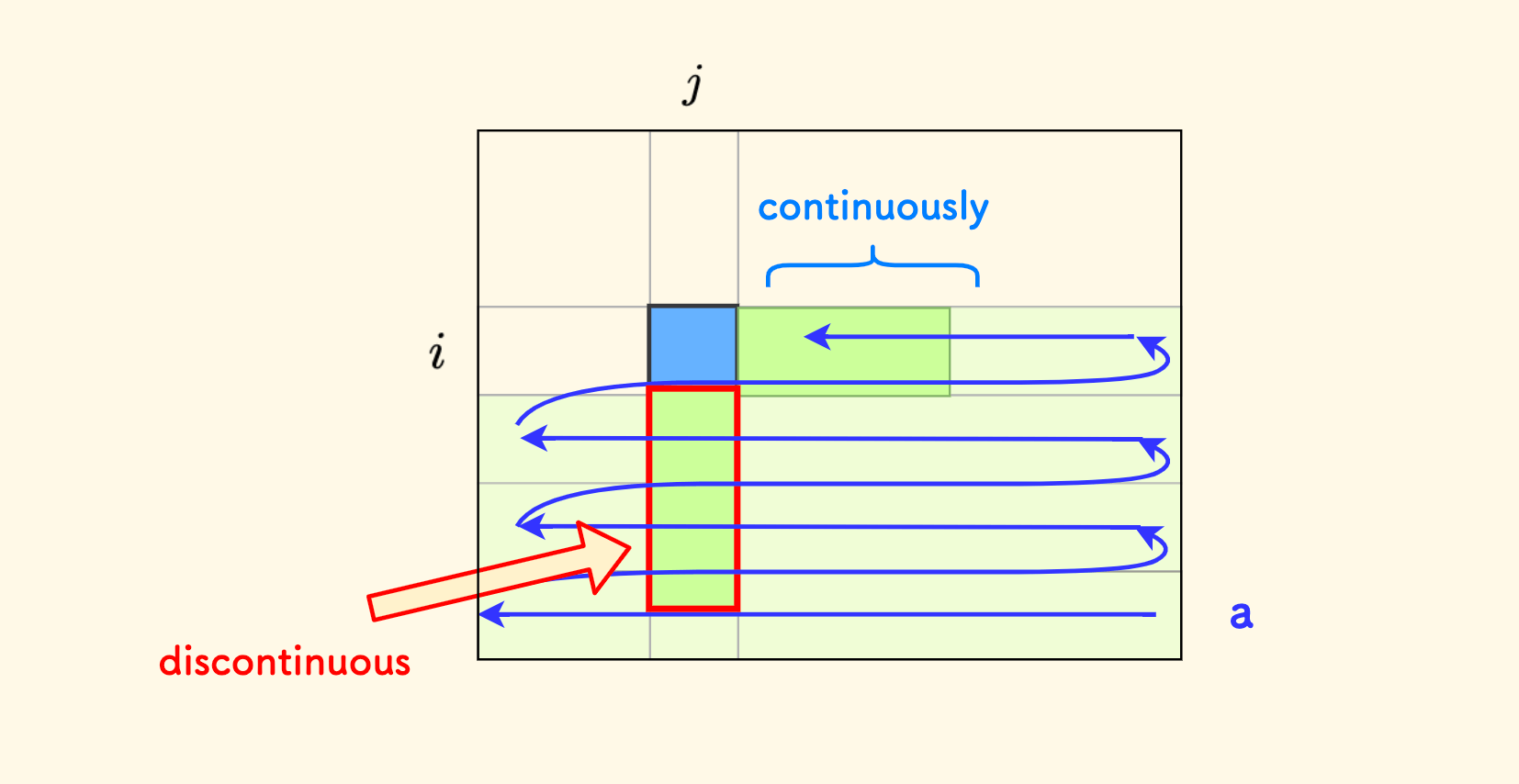 同样的道理,如果我们的沿着「列连续」的思路建立原数组 a