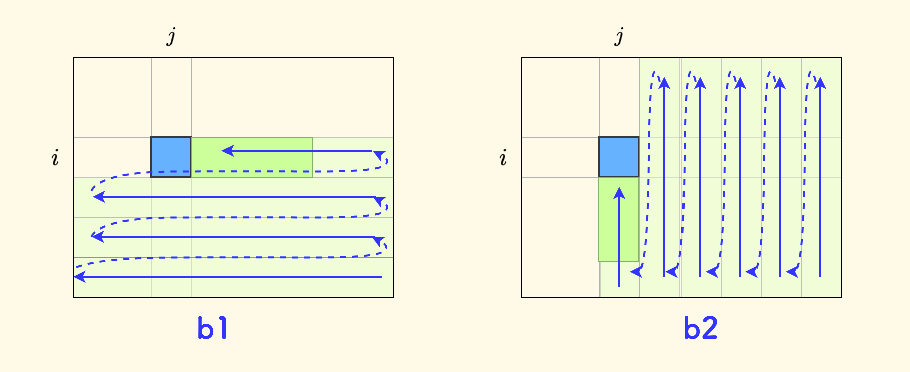 for (int k = i + 1; k <= min(i + g[i][j], m - 1); k++)