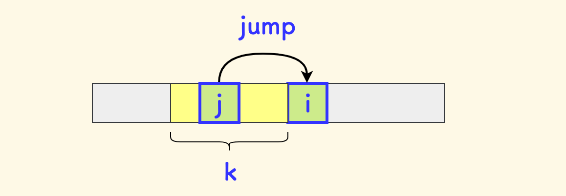 基于前面的最优情况,相邻元素的距离不得超过 $k$,所以转移只能来自区间 $[i-k, i-1]$ :