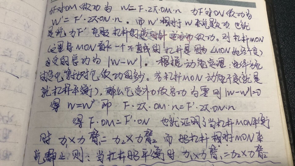 这个笔记本上还记录了一些从微观角度的思考,比如“温度差导致的热传递现象”,“电流为什么具有热效应”,“为什么高温的物体容易变形”,现在来看很多想法和解释可能是错的, , 现在,我也很好奇地去 Google 下网络上、知乎上对一些问题的解答,比如蒲丰投针的解释,比如杠杆定理的解释,去验证下当年的思考是不是正确的, 当然有些是错误的,有些我到现在也觉得是正确的,结果已经不那么重要了。