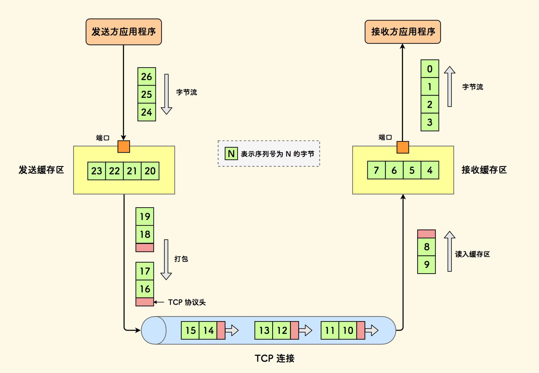 - 先会对发送缓存内的数据分段,打包成 TCP 数据包再发送。