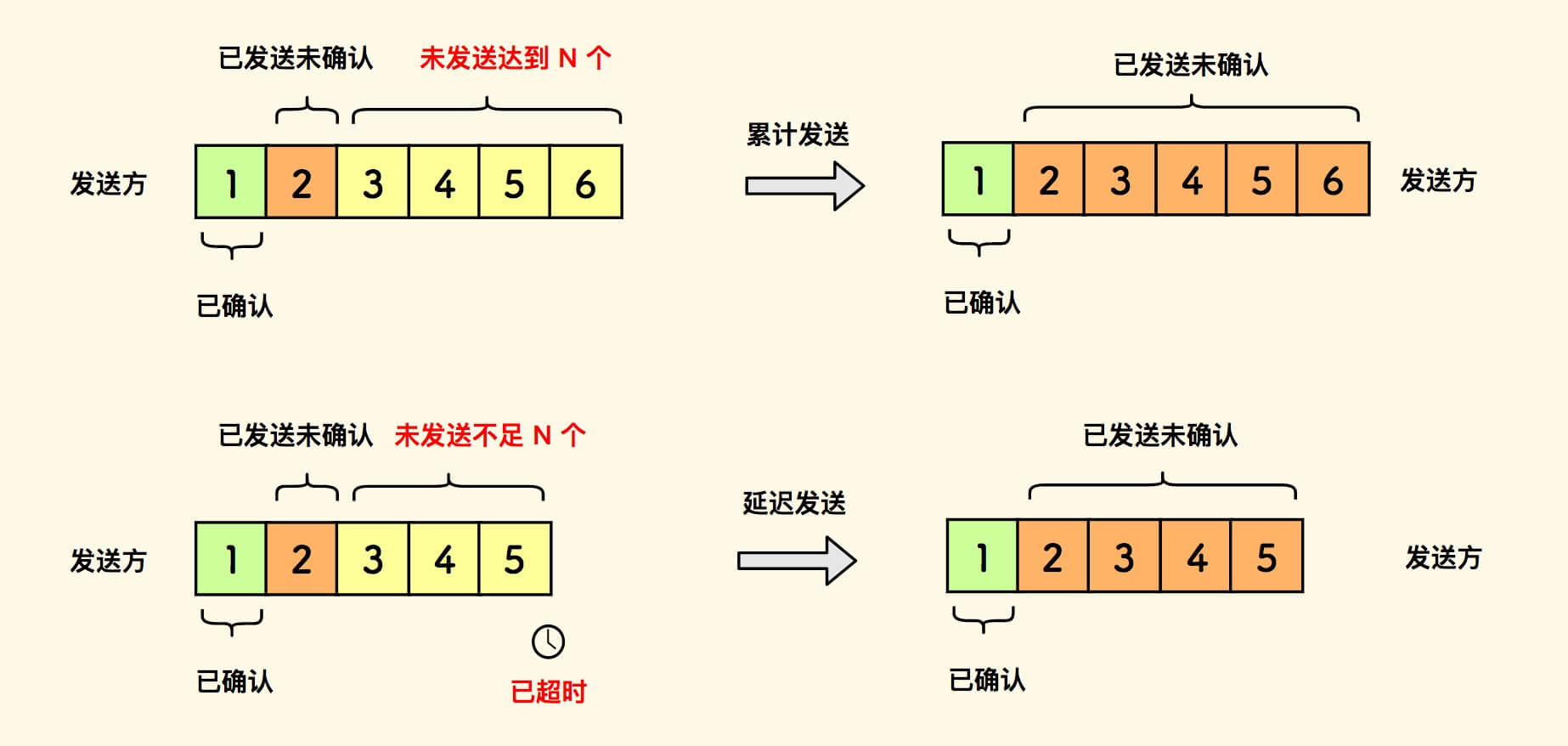 已经讲过,TCP 协议默认的 Nagle 算法 采用了延迟确认的方法。