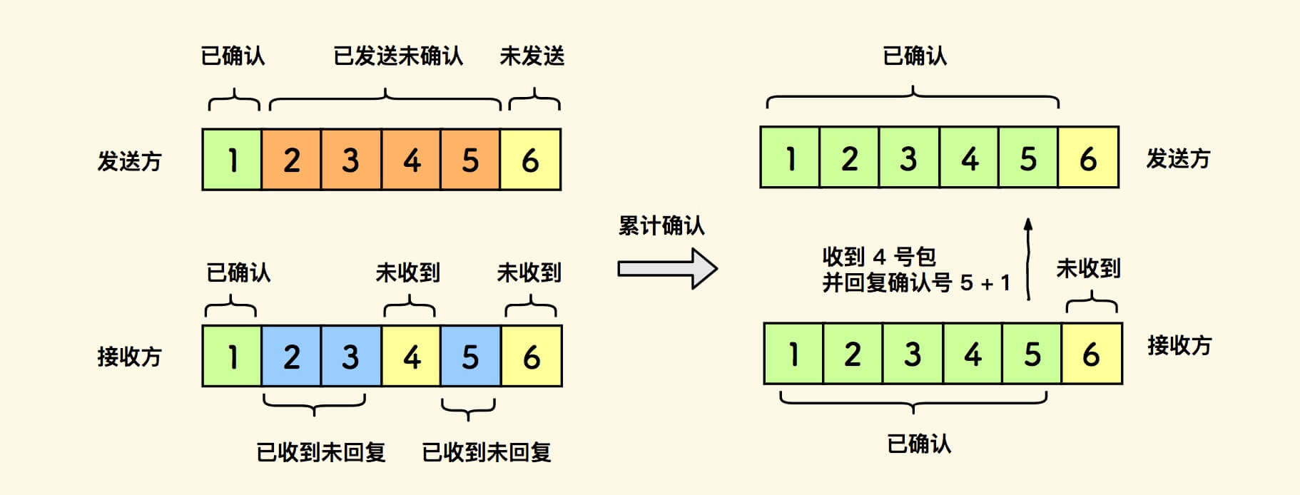 累计确认其实是一种批量确认的机制,以减少确认包的数量。