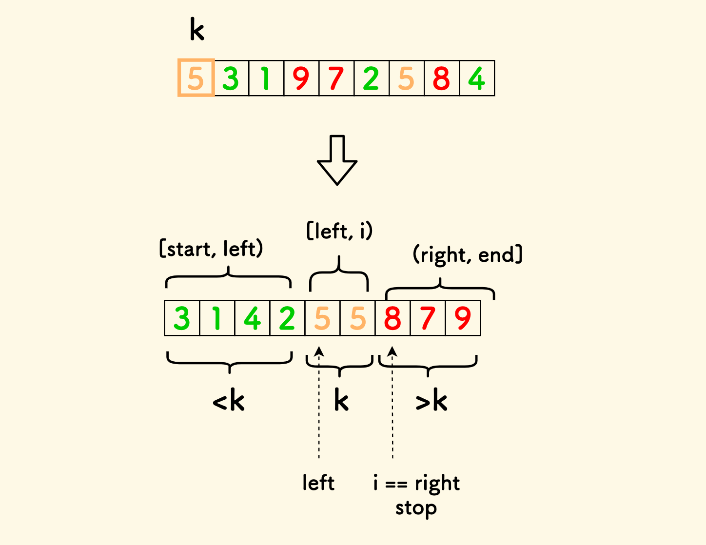 左边 (不包括 i )永远不大于基准值, 也就是中间这个部分是等于基准值的