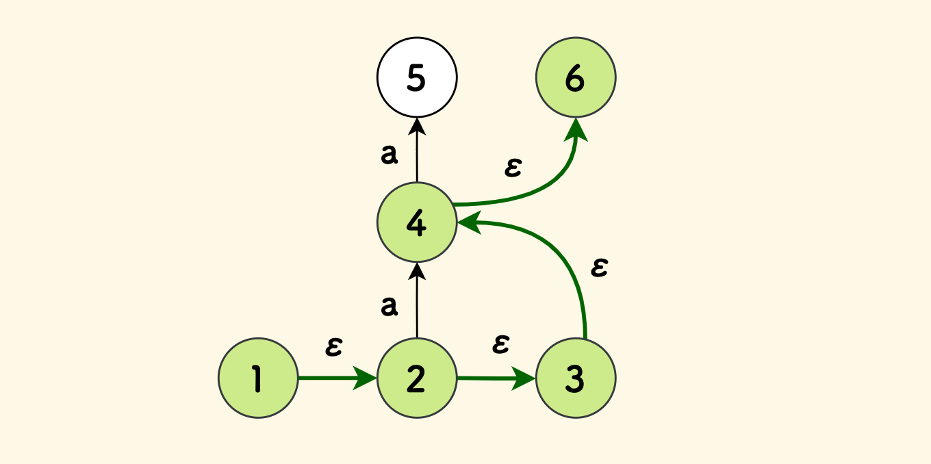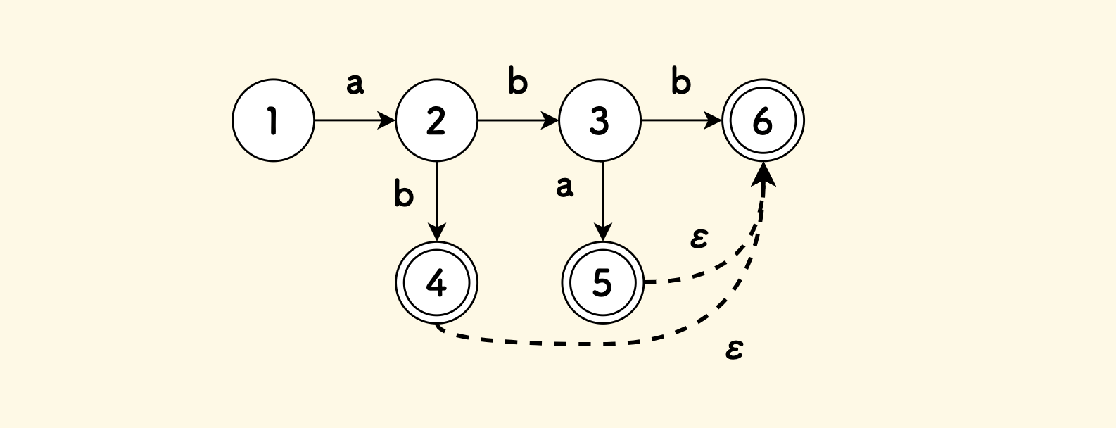 空边意味着,可以在不输入符号的情况下,沿着它前进。如果目标状态也有空边,那么这种跳转可以递归进行。 比如下图中,1