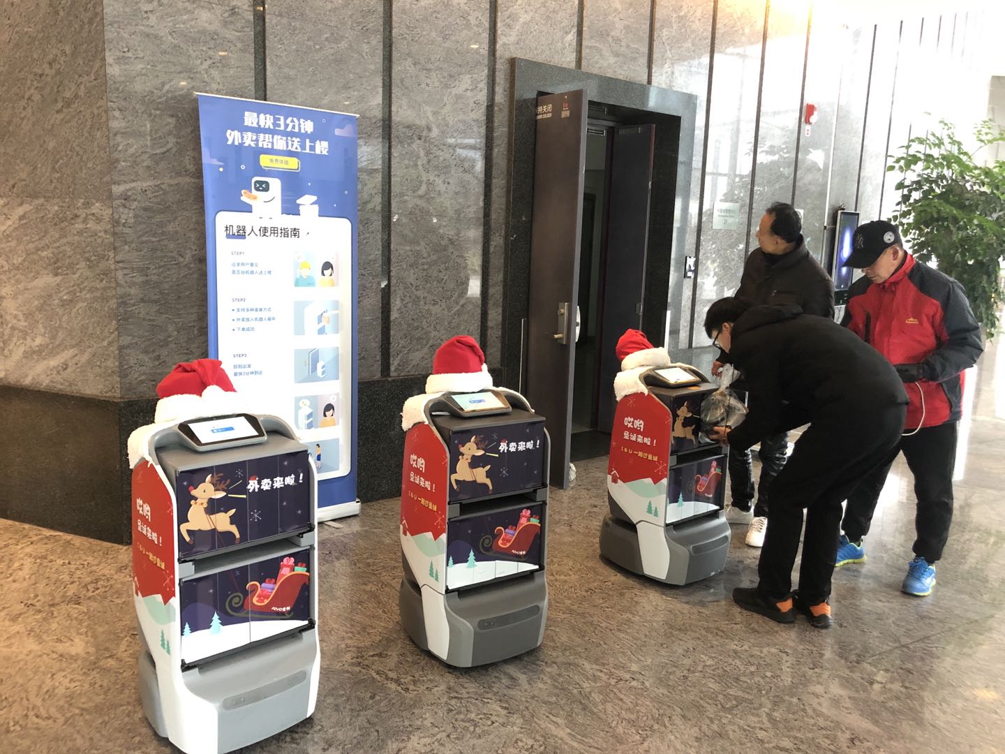 重新入伙后的头两个月里,很幸运,找到了几位优秀的伙伴,我们组成了小队伍,做起了 YOGO 早期的外卖业务。 这几位同学非常有责任心、大家磨合的也很快,到现在也仍然有着不错的联系。 当时的外卖系统的逻辑非常简单,我们只是把流程跑通,用户可以注册选择机器人配送,骑手小哥把外卖交给我们, 机器人帮客户送上楼。我们也开了两三个楼宇,机器人送外卖跑了起来。