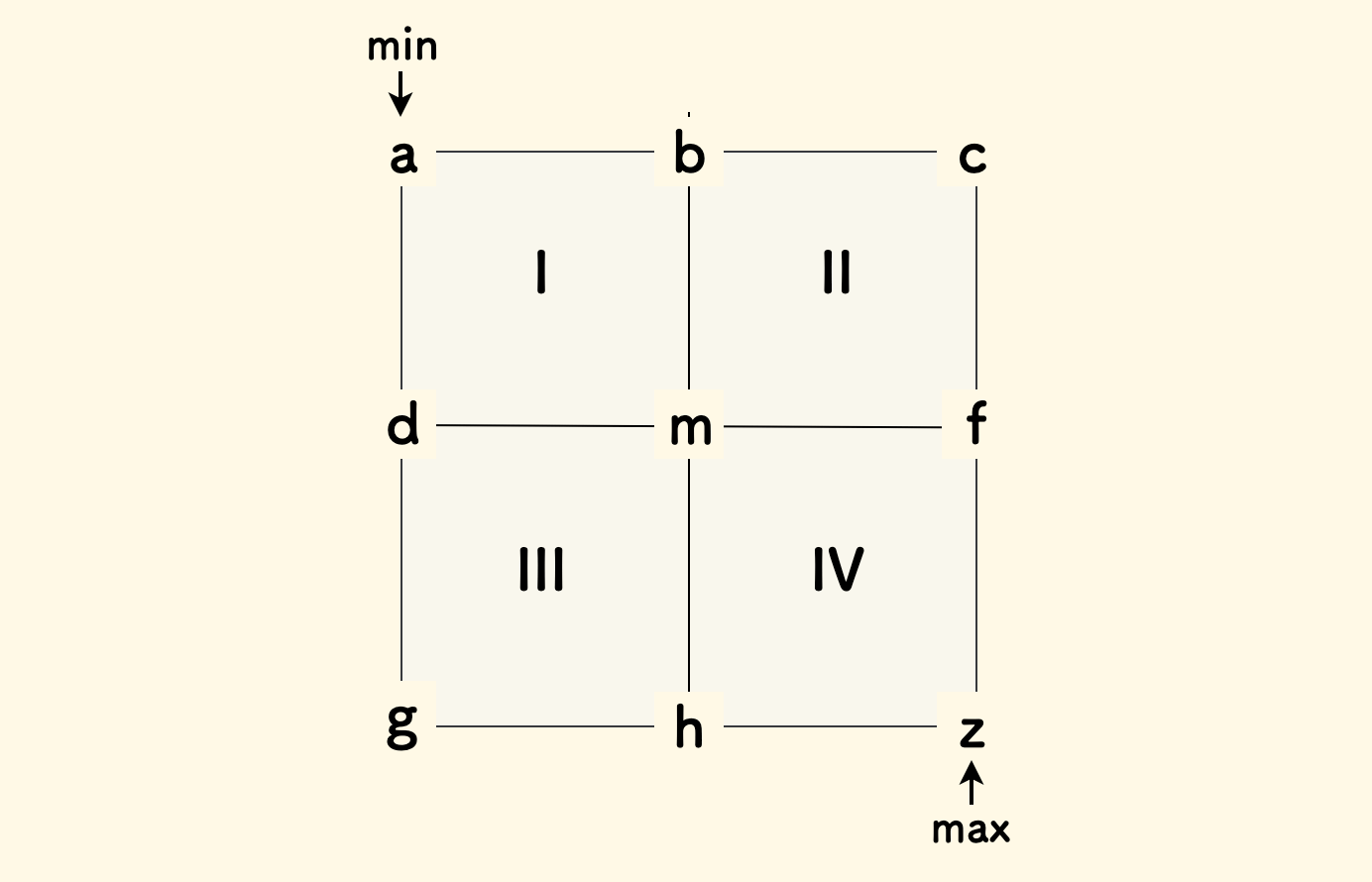 可以表示一个子矩阵, 同时对划分的交点进行标号 b, d, f, h