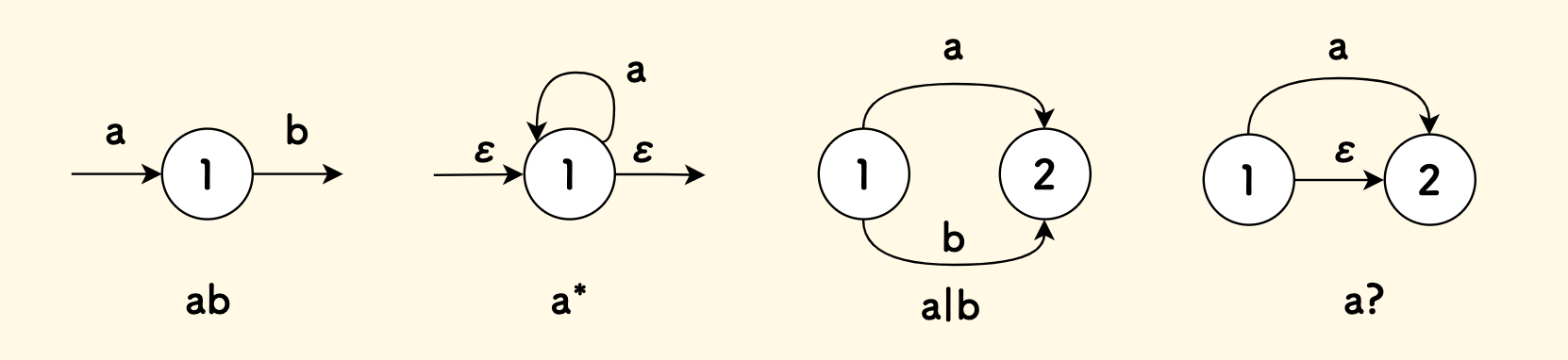 关键点来了,正则表达式可以表达为 NFA 。 具体的表示方法可以看下图:
