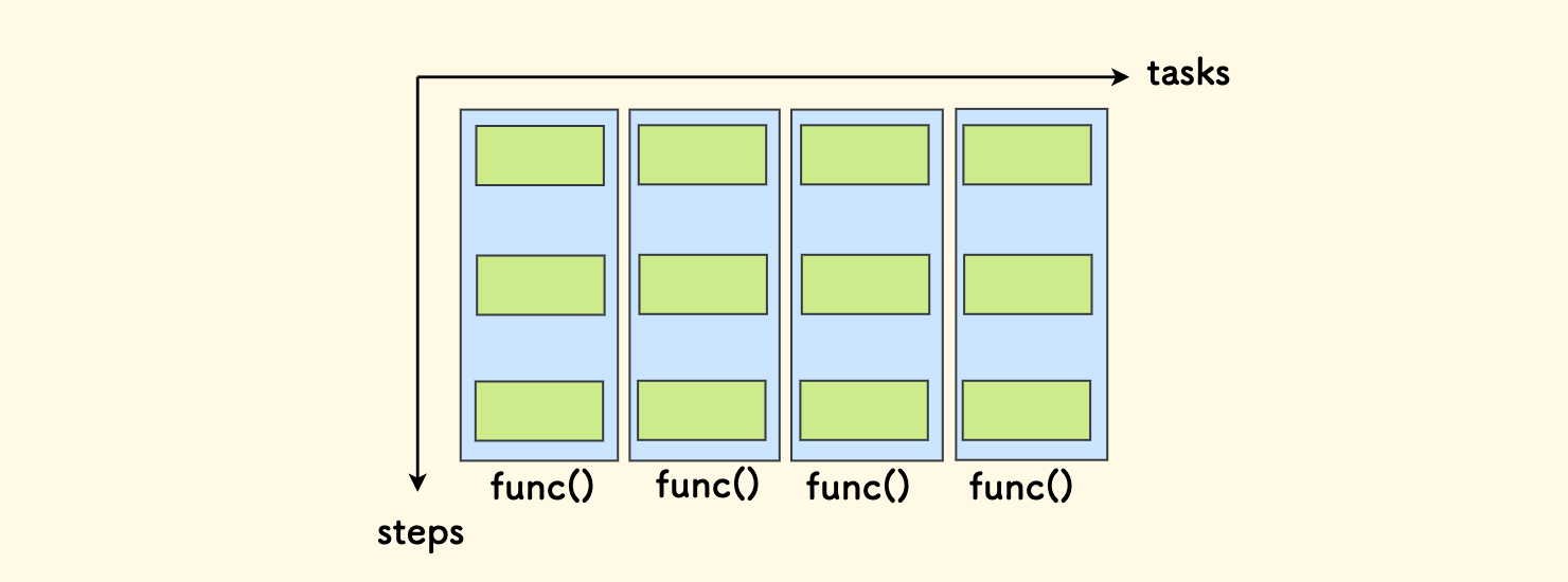 def func(task): ... # handle step 1 ... # handle step 2 ... # handle step 3 for task in tasks: func(task)