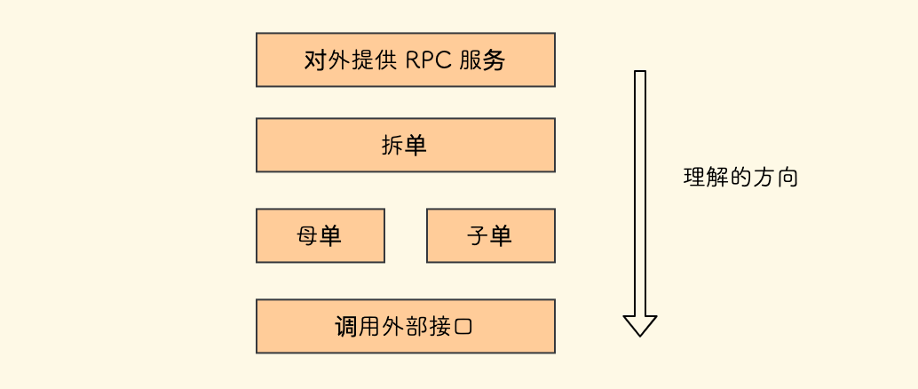 举一个例子,在典型的一个存在子母单的 和 拆单逻辑 的电商系统中,以 Python 语言为例,概念分层图如下: