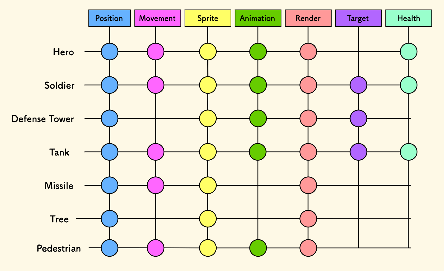 - 相同的部件用同一种 颜色 和 形状 来表达。