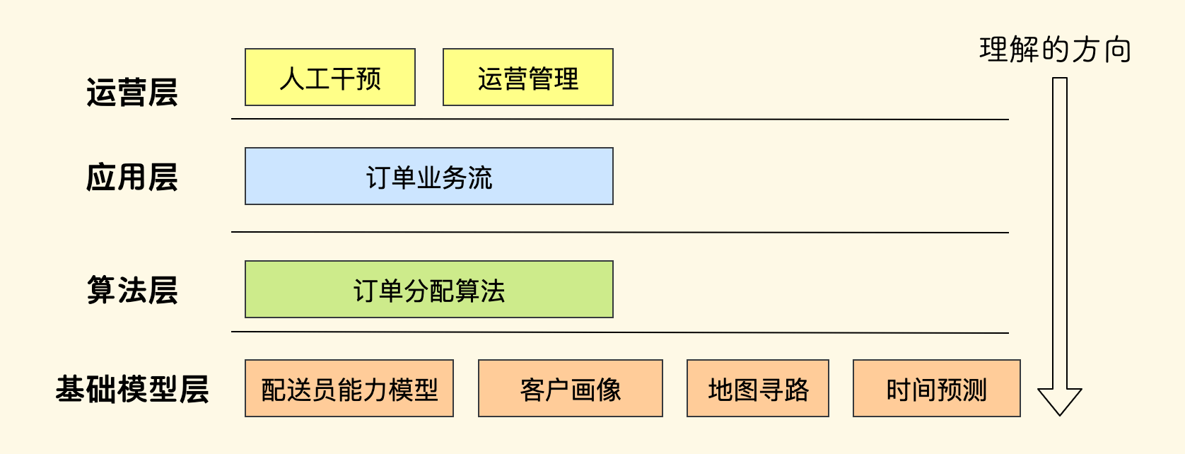 有时直接做模块化是困难的,这一般源自对概念的分析不够清晰,解决的办法之一是理一张概念分层图。 把业务概念按照「谁理解谁」来搭积木,划分原则是,下层不理解上层、上层可以理解下层。 理出来概念之间的层次关系后,最终的模块划分就有了依据。
