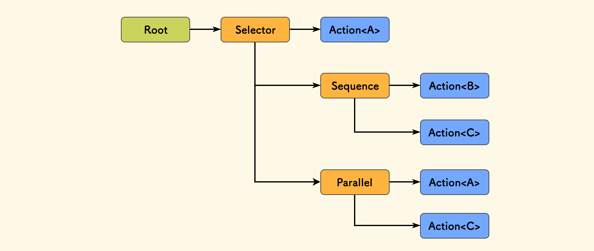 在面向对象 OOP 设计中,类之间的关系也可以组织成一颗类型的继承树,也可看作一种模块划分。 下面是一个行为树中节点类的继承树的例子,其中每一个 Node