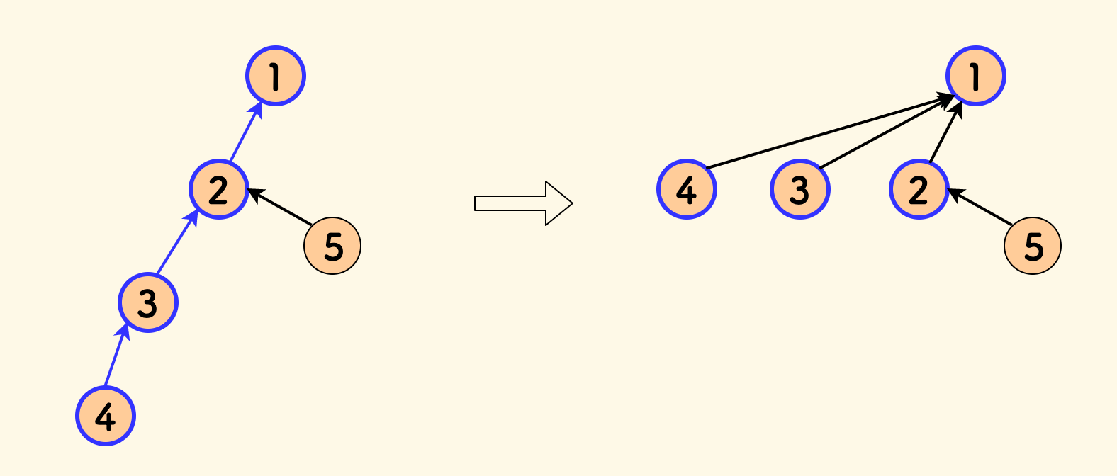 这种把查询结果利用起来,直接拉近节点和根距离的办法,就是所谓的「路径压缩」。