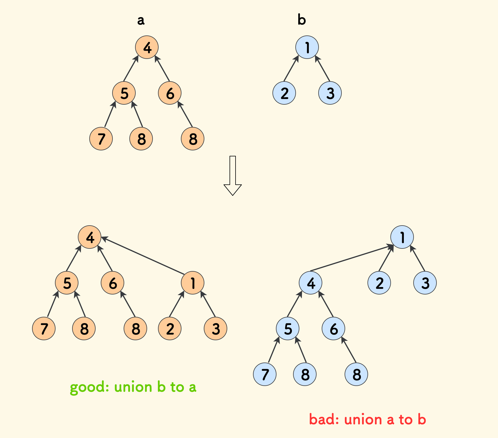 if (sizes[a] > sizes[b]) { // 把 b 并入 a